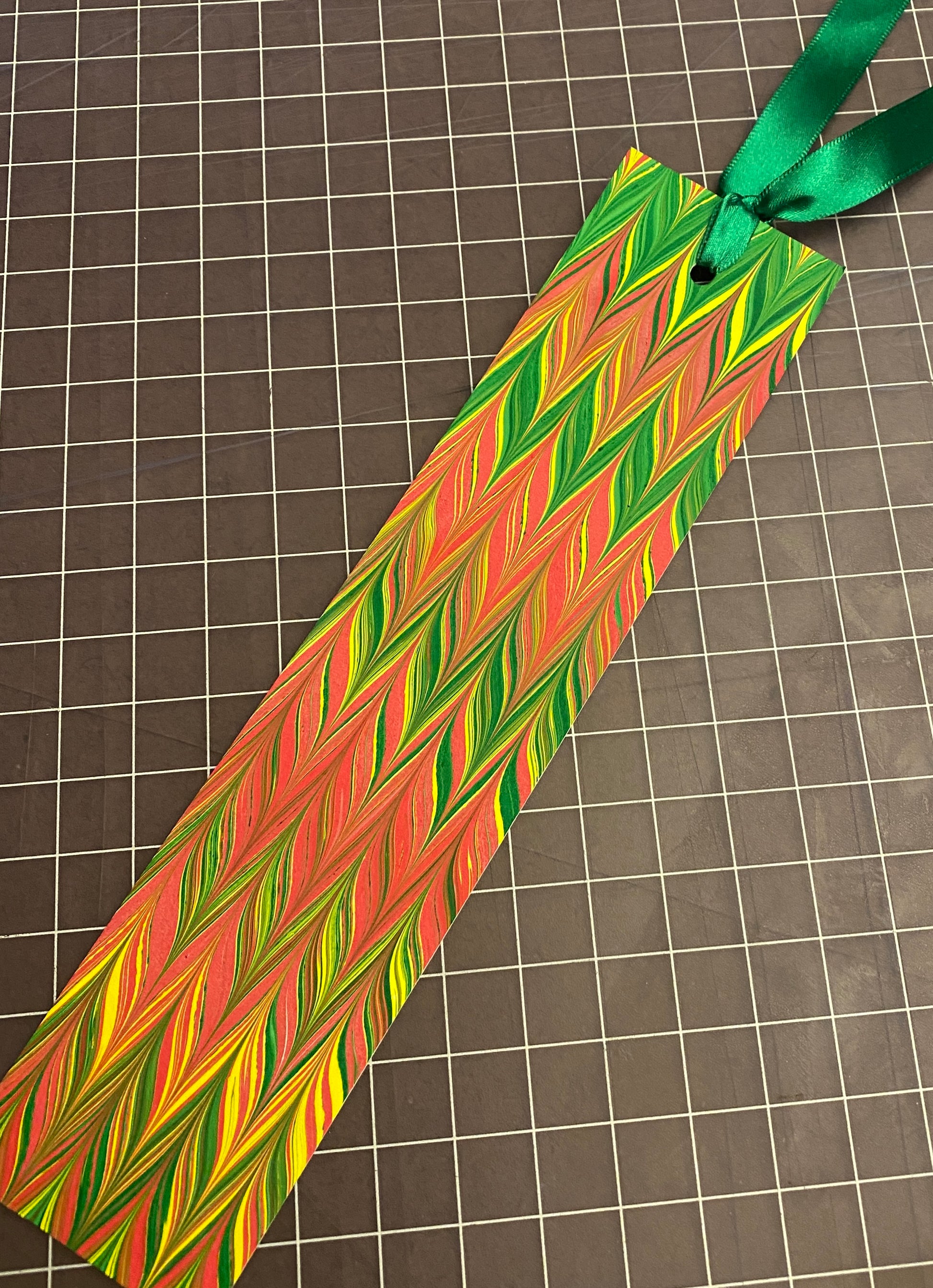 Kerner Marbled paper laminated to Crane cotton paper. Various ribbons used for tie.
